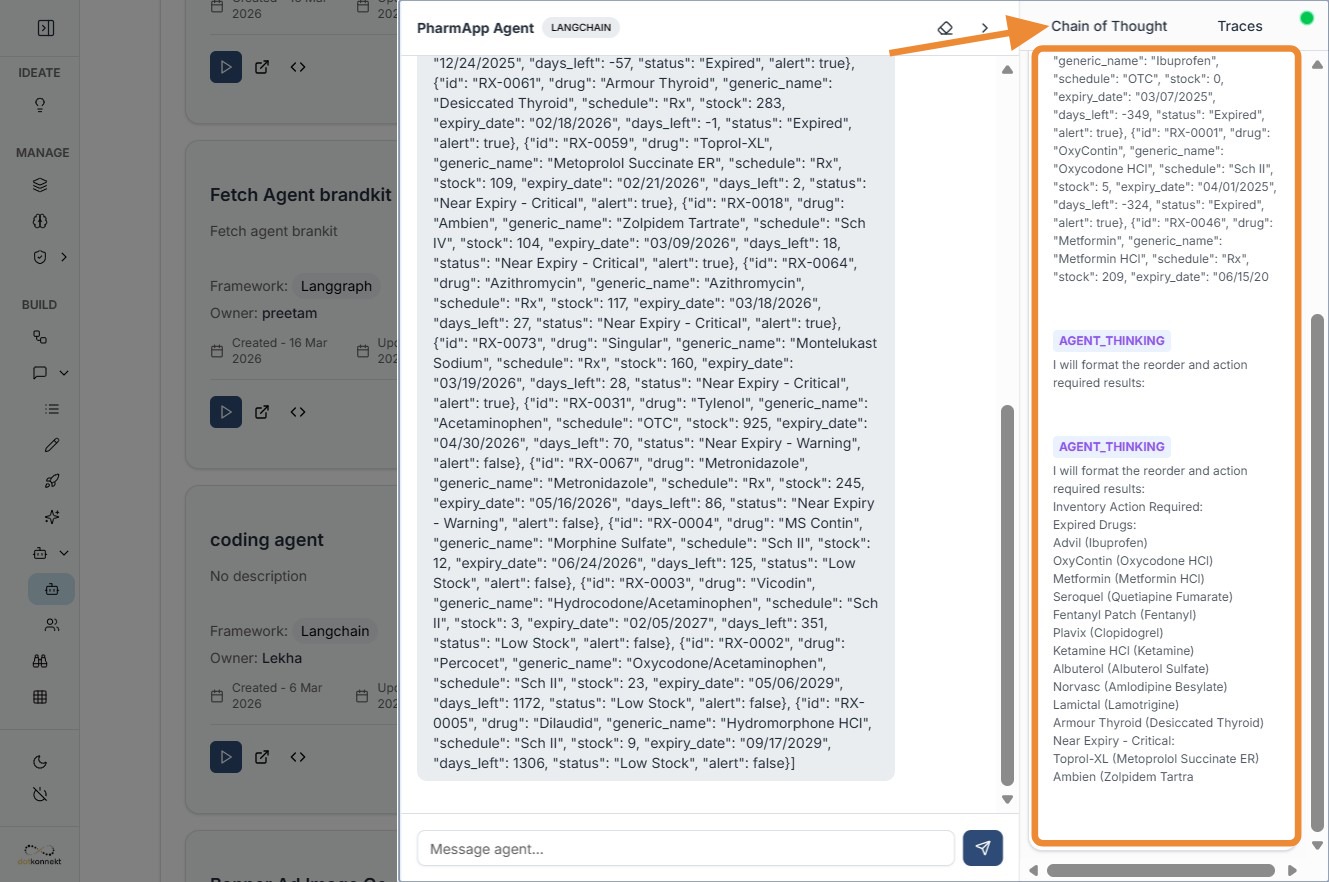 Traces provide a detailed, step-by-step view of how the agent executed your query.